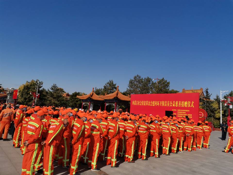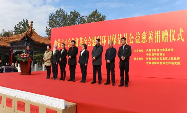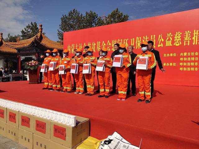 10月12日上午,由内蒙古社会扶贫基金会、呼和浩特日报社主办,呼和浩特市玉泉区人民政府、呼和浩特市世和芒针研究院承办的“内蒙古社会扶贫基金会慰问环卫保洁员公益慈善捐赠仪式”在呼和浩特举行。